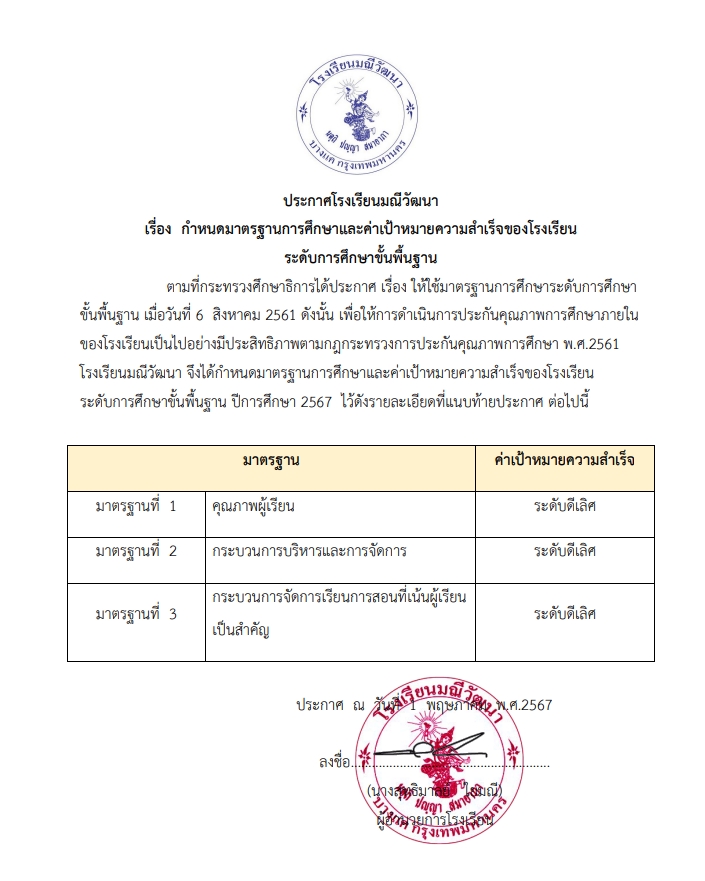 โรงเรียนมณีวัฒนา แขวงหลักสอง เขตบางแค กรุงเทพมหานคร