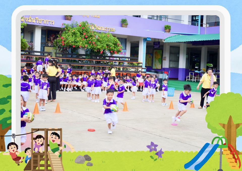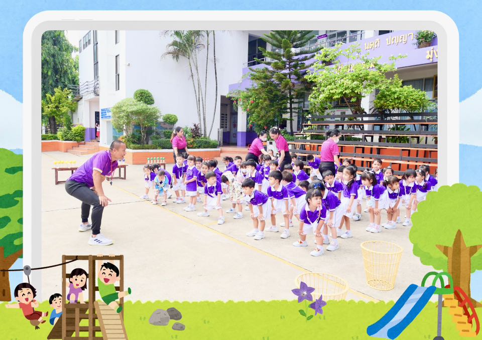 สนุก สุขภาพดี วิ่งเล่นไม่มีเบื่อ พละกับครูเอก ออกกำลังกายกลางแจ้ง ท่ามกลางบรรยากาศสดใสและเสียงหัวเราะ กิจกรรมพละไม่ใช่แค่การออกแรง แต่ยังเสริมสร้างวินัย ความสามัคคี และความมั่นใจให้กับเด็กๆ อีกด้วย